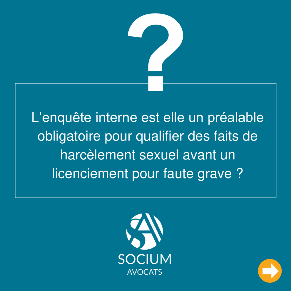 L’enquête interne suite à une dénonciation de faits de harcèlement n’est pas obligatoire pour licencier le salarié pour faute grave